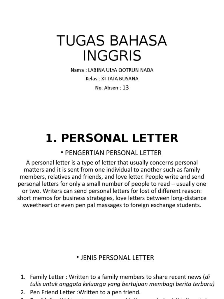 Personal Letter Pengertian Dan Contoh