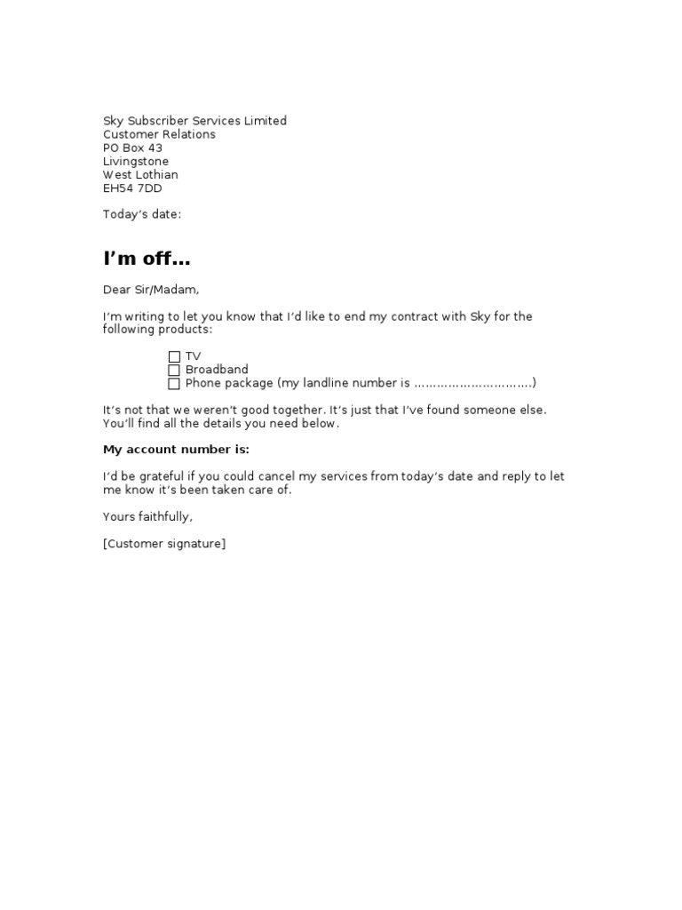 Sky Cancellation Letter Template Cable Networks Communication