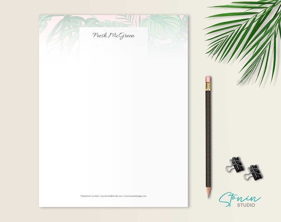 Floral Pink Green Letterhead Design Stationery Download Etsy