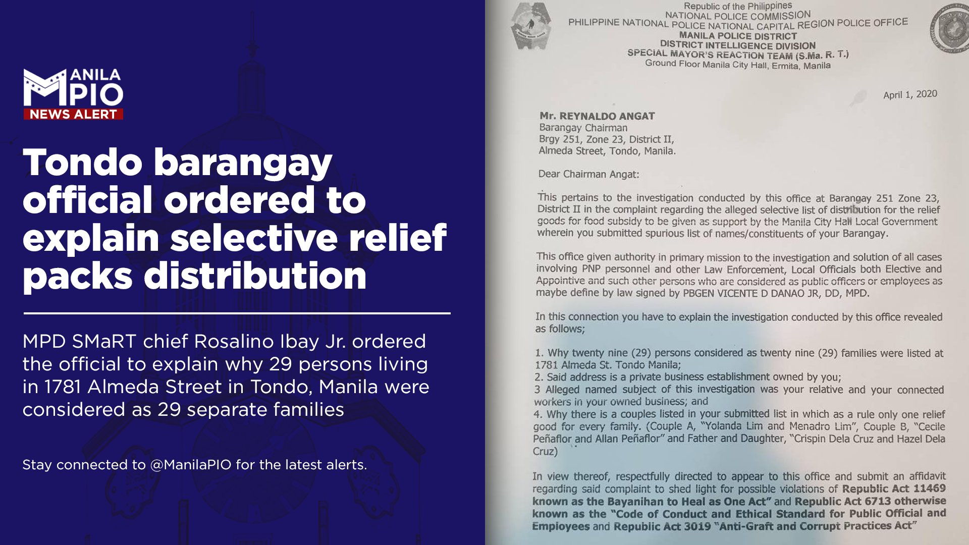 Manila Public Information Office On Twitter News Alert A Barangay Chairman In Tondo Manila Has Been Ordered To Explain Why His Office Was Allegedly Selective In Distributing Relief Goods Provided By The