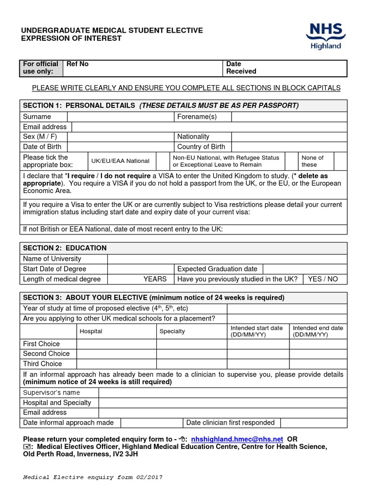 Expression Of Interest Elective Placement For Medical Students Docx Emergency Department Medicine