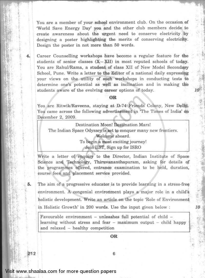 English Elective Cbse Functional English 2009 2010 Cbse Arts Class 12 Question Paper With Pdf Download Shaalaa Com